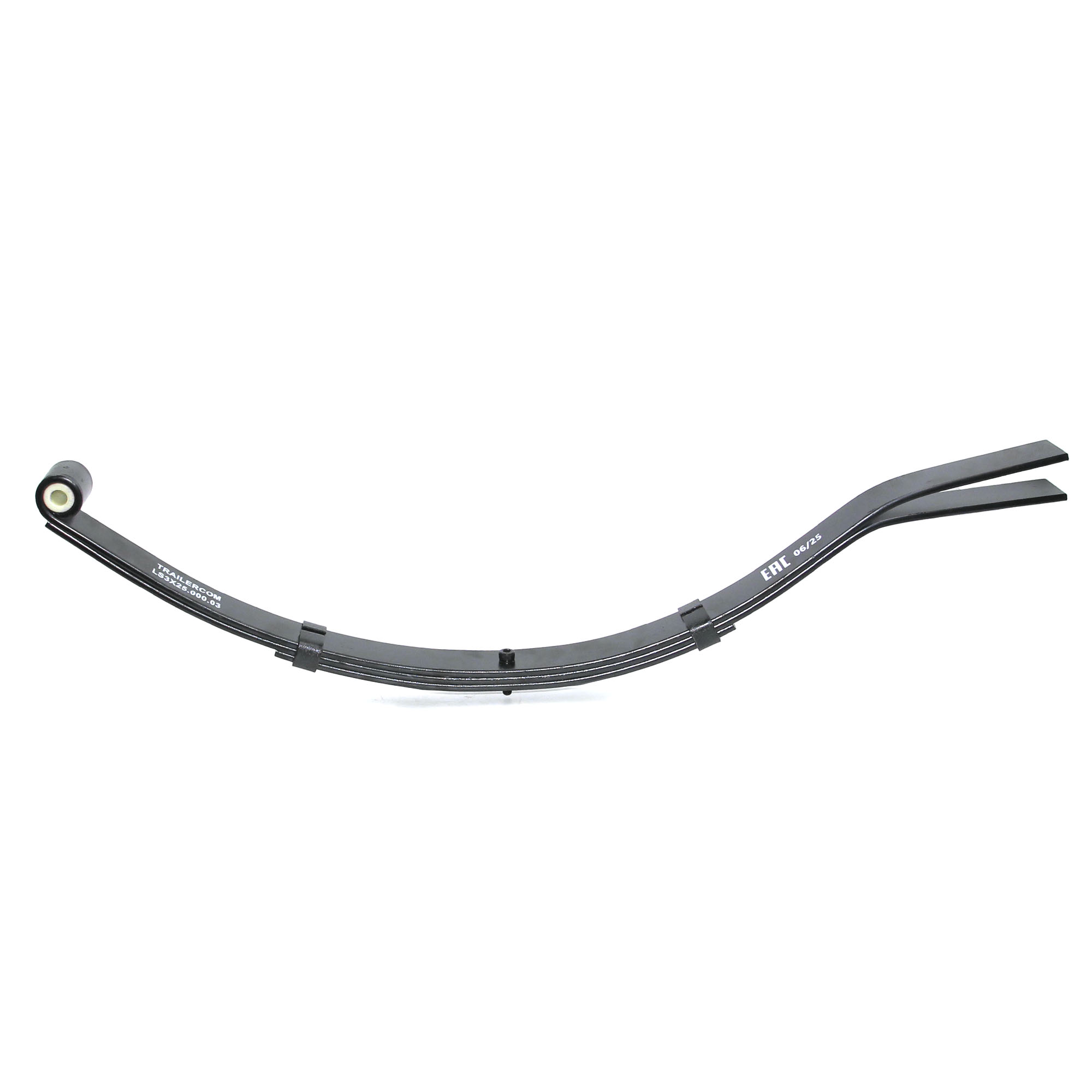 Изготовленная с применением передовой технологии производства, рессора TRAILERCOM оснащена фторопластовой втулкой и покрыта черным полимерным грунтом. Она применяется на большинстве легковых прицепов без тормозной системы, производимых в России.
